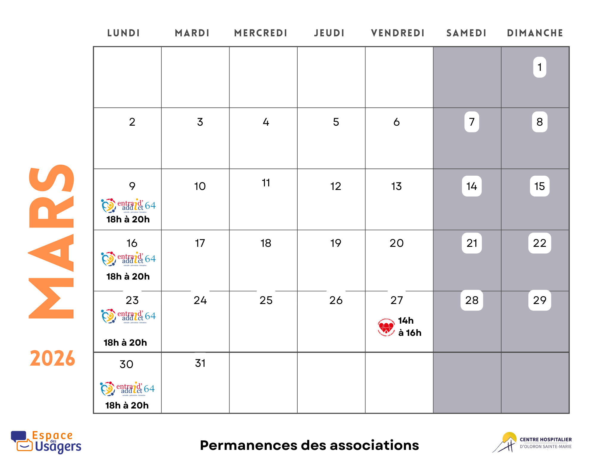 Permanences des associations à l'Espace des Usagers